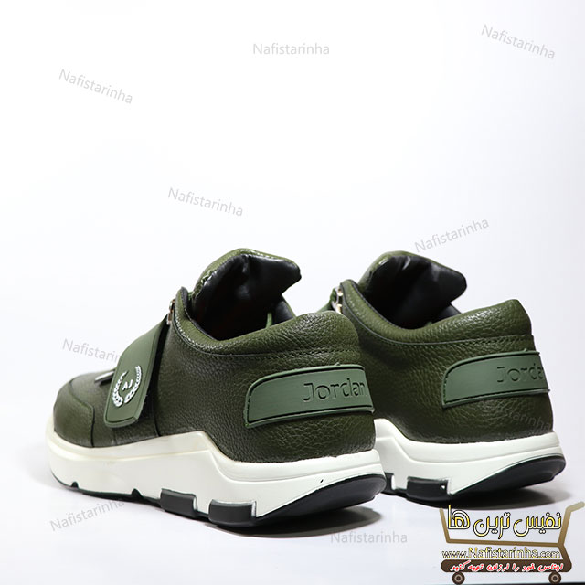 روی چسب کتونی یک نوشته AJ وجود دارد و همچنین یک مارک ORIGINAL در کنار قسمت بند ای کتونی دوخته شده است پشت کتونی نوشته ای با همان رنگ یشمی با نام jordan نوشته شده است  که همه این نوشته ها در کنار هم سبکی خاص به کتونی داده است .