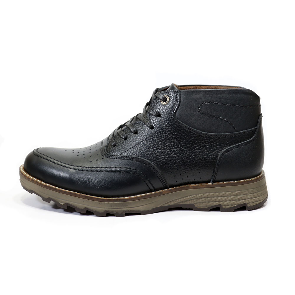 نمای کناری نیم بوت چرم مشکی مردانه