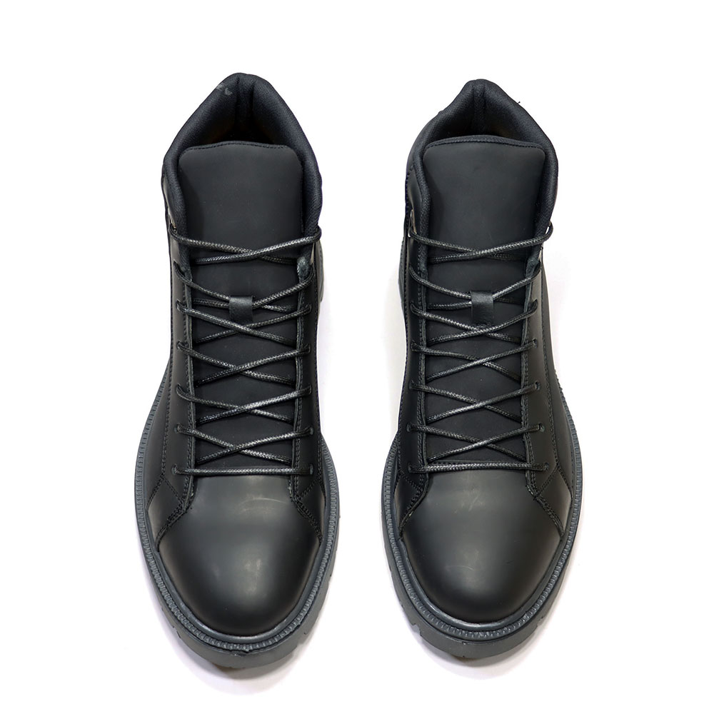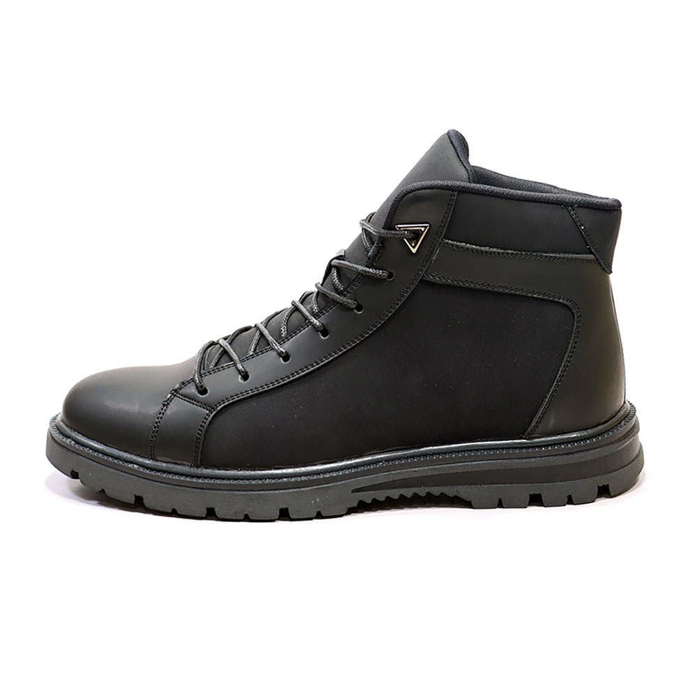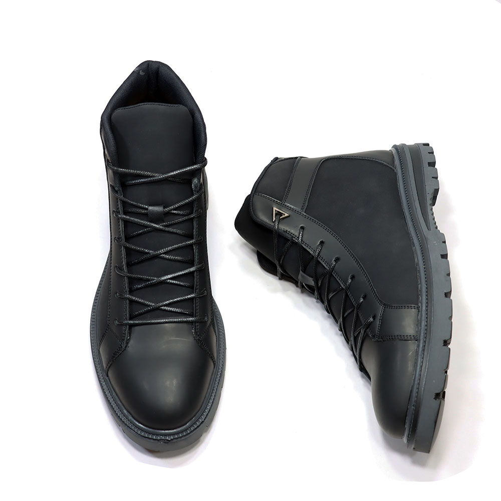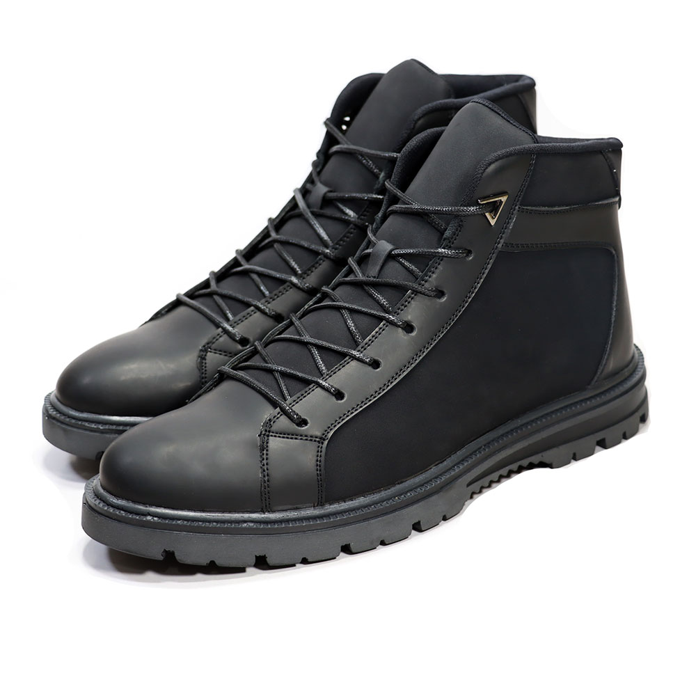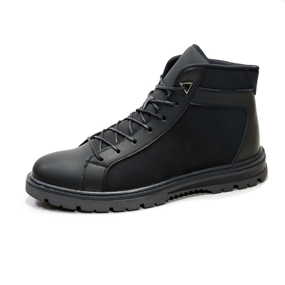 قسمت رویه از جنس چرم صنعتی می باشد . طرح این نیم بوت از یک نیم بوت ایتالیایی الگو برداری شده که بسیار شیک و حرفه ای می باشد . در قسمت بند های بالایی نیم بوت مردانه ونیز جا بندی به صورت مثلث در طرح جدید طراحی شده که حتی در صورت خیلی محکم کشیدن بندها دیگر آسیبی به قسمت بند های آن وارد نمی شود و ظاهری حرفه ای را منعکس میکند .این نیم بوت یک نیم بوت بندی می باشد و در فصل زمستان از استقبال خوبی برخوردار است به طوری ک امسال برای چندمین بار شارج شده است .